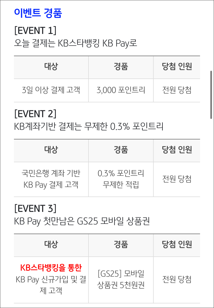 이벤트는 KB스타뱅킹어플에서 확인 가능합니다.