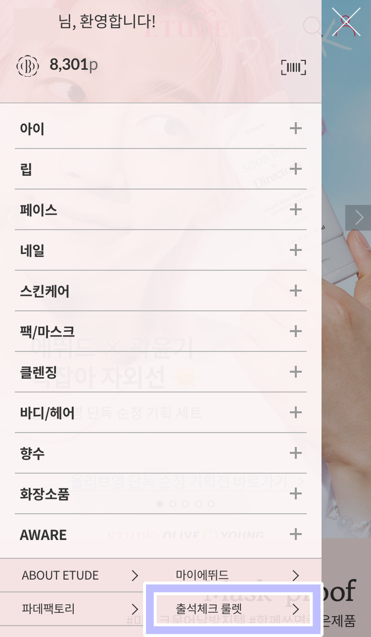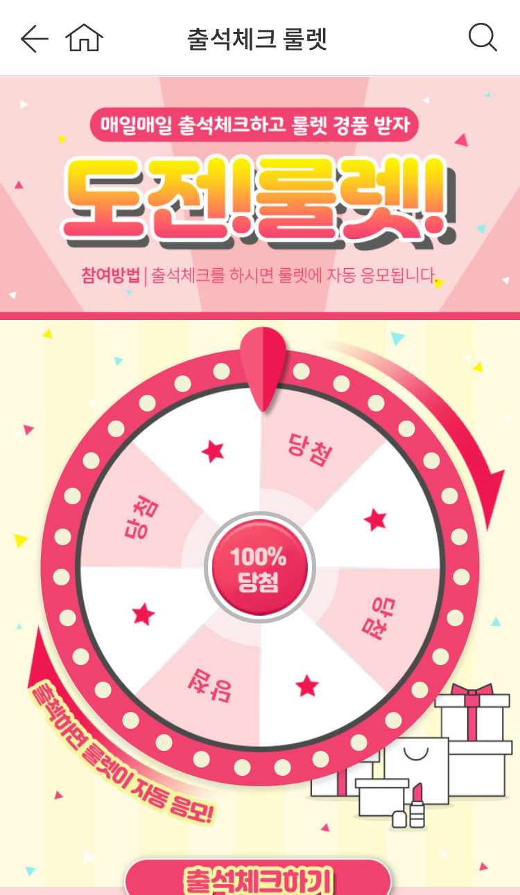 출석체크 룰렛 (뷰티포인트 유효기간 60일)
