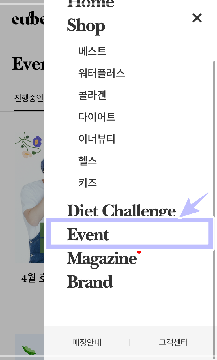 메뉴에서 이벤트를 찾아 들어갑니다.