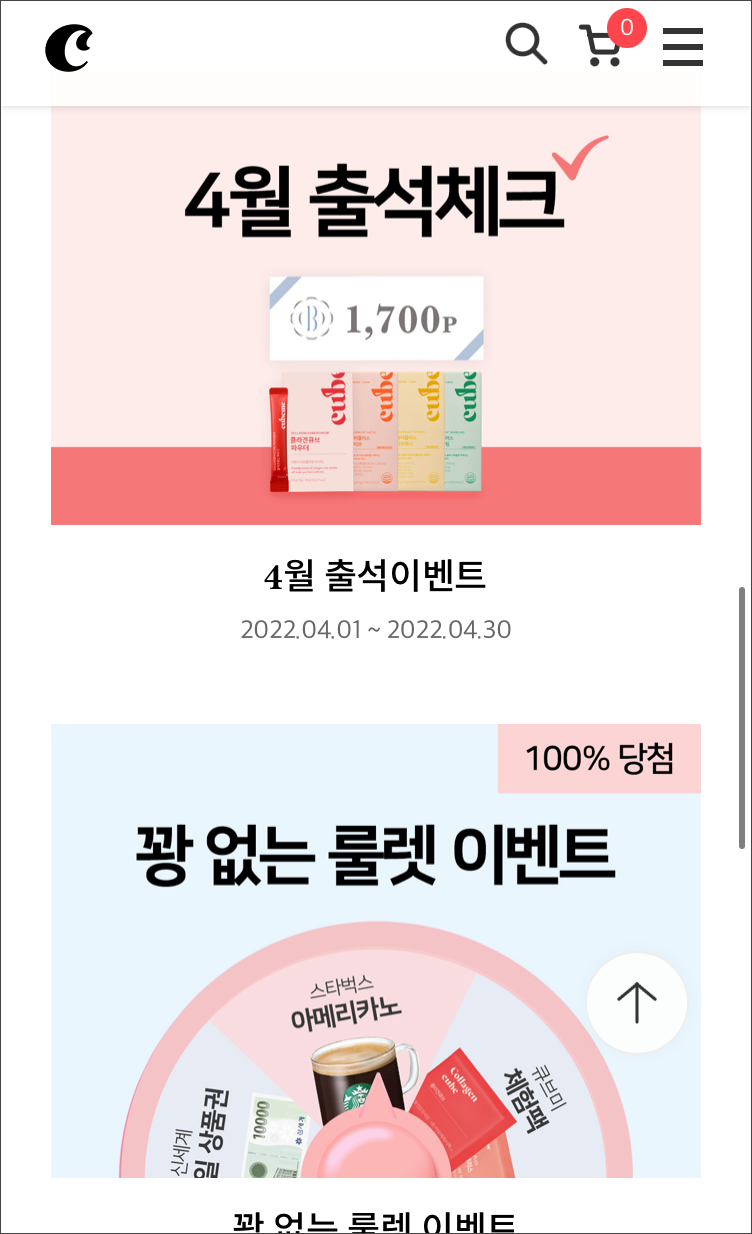 이번달에 새롭게 시작해 본 아모레퍼시픽 계열의 이너뷰티브랜드 큐브미입니다. 큐브미는 현재 앱이 없어서 홈페이지를 통해 이용할 수 있는데요, 홈페이지를 휴대폰 화면에 바로가기 해 두어서 이용중입니다. 큐브미에서도 뷰티포인트를 모을 수 있는데요~ 뷰티포인트 통합 아이디와 패스워드를 이용하기 때문에 여러개의 앱을 이용하는데 불편함이 없고, 그만큼 빨리 뷰티포인트를 모을 수 있기도 합니다.