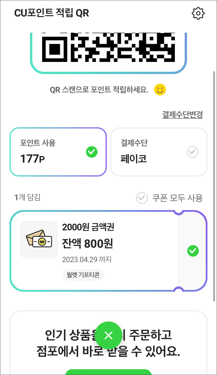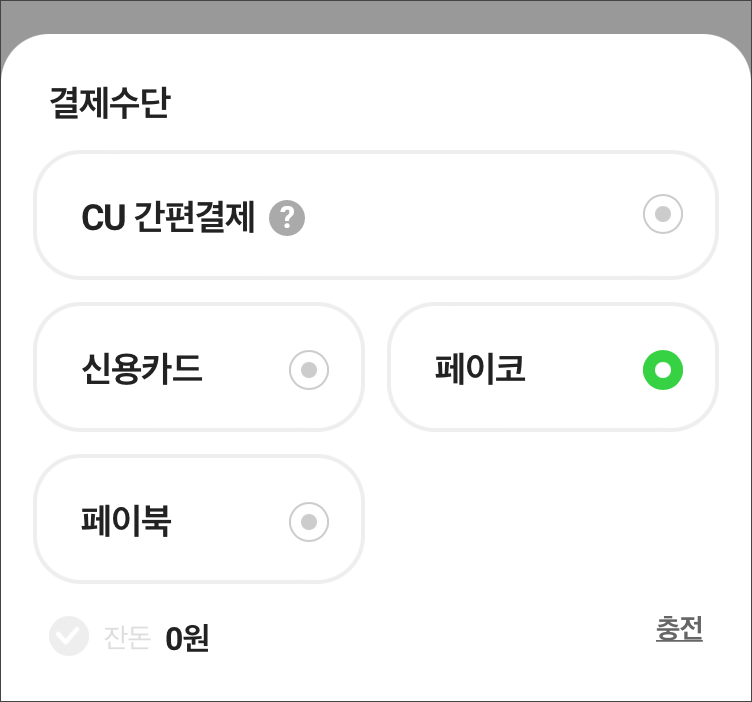 그렇지 않다면 CU간편결제를 이용하거나 직접 신용카드를 등록할 수도 있습니다.