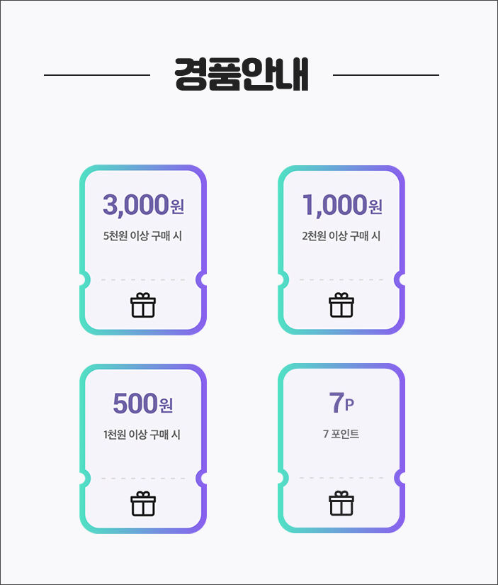 - 5월 신규가입이벤트로 1,000원 쿠폰을 지급합니다.(2,000원 이상 구매시 이용가능)