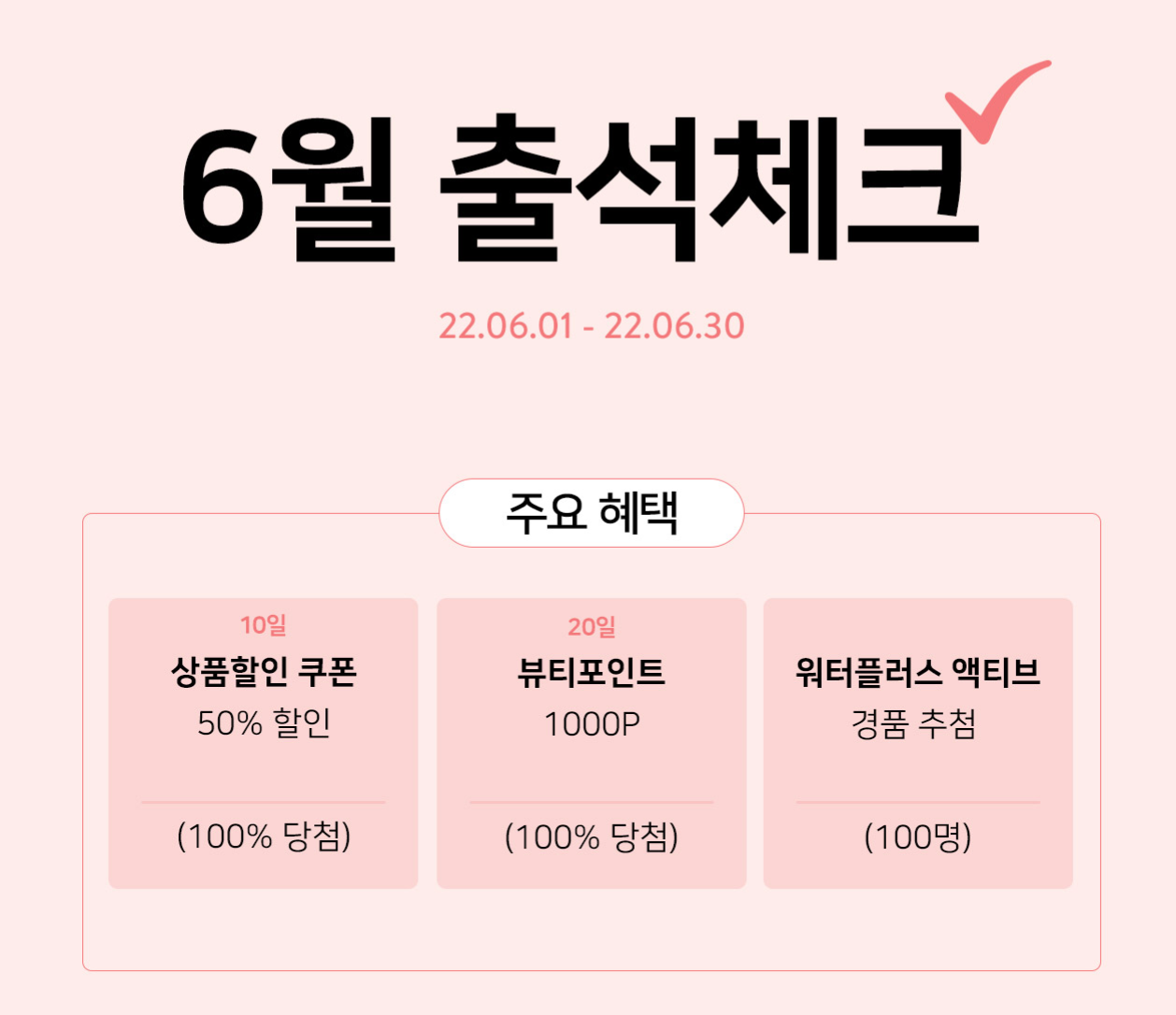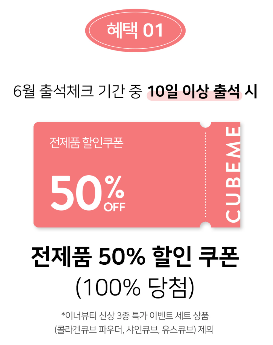 6월 큐브미 출첵이벤트는 아래와 같이 바뀌었어요~