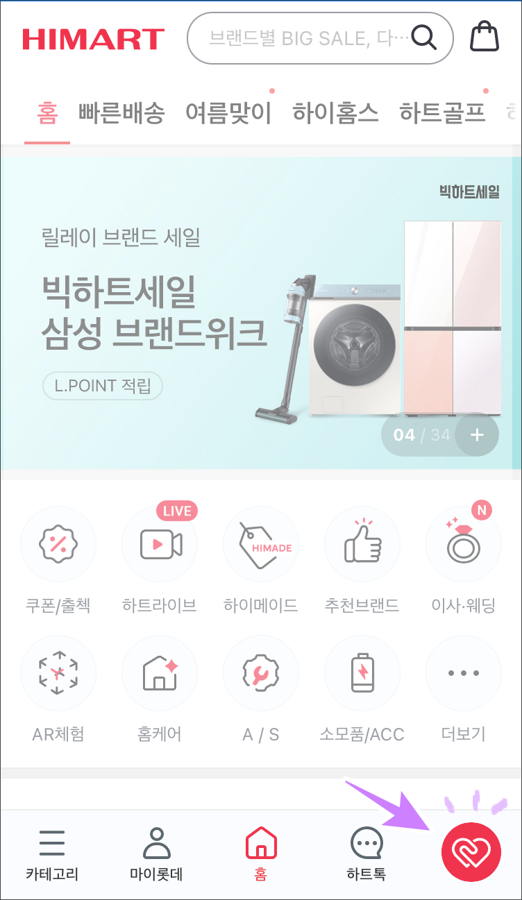 하트마켓앱은 따로 있지 않고, 하이마트앱 안으로 들어가면 찾으실 수 있습니다.