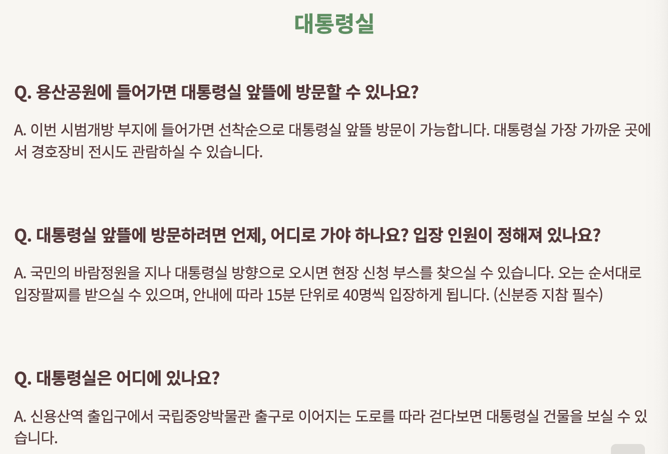 대통령실 앞뜰 방문은 선착순으로 진행됩니다.