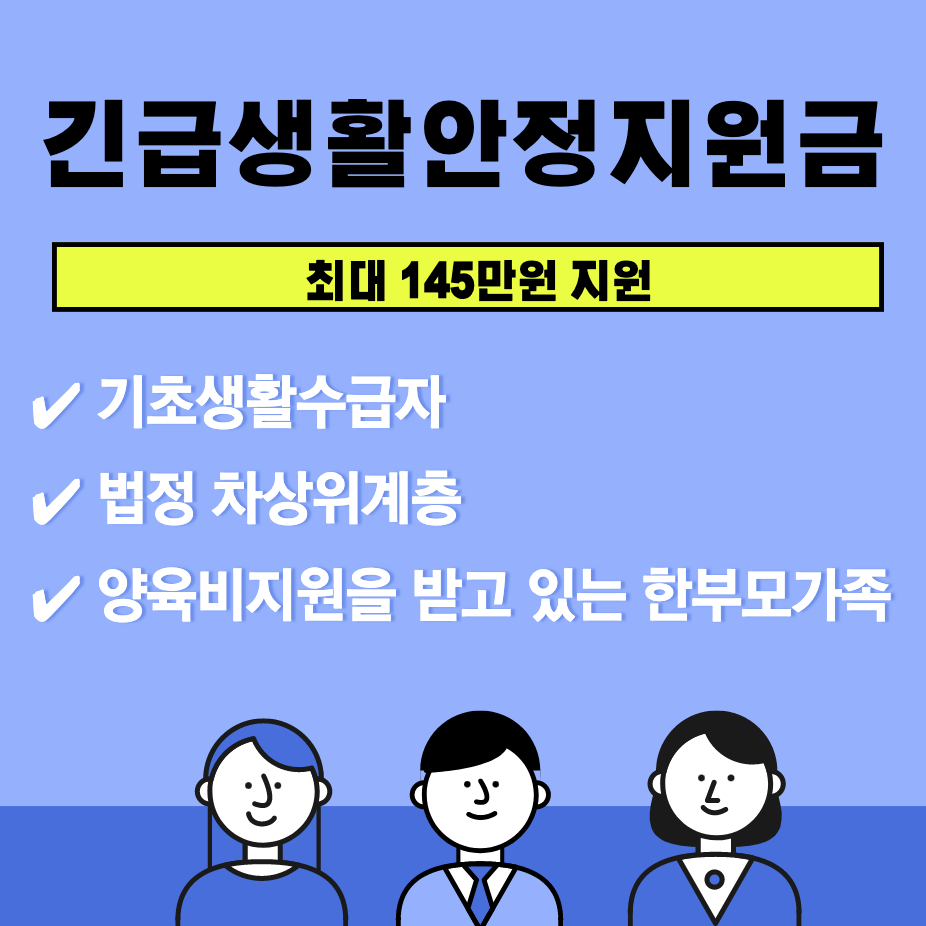 저소득층(기초생활수급자 및 법정차상위계층, 한부모가족)에게 최소 30만원~ 최대 145만원까지 1회 차등 지급할 예정입니다.