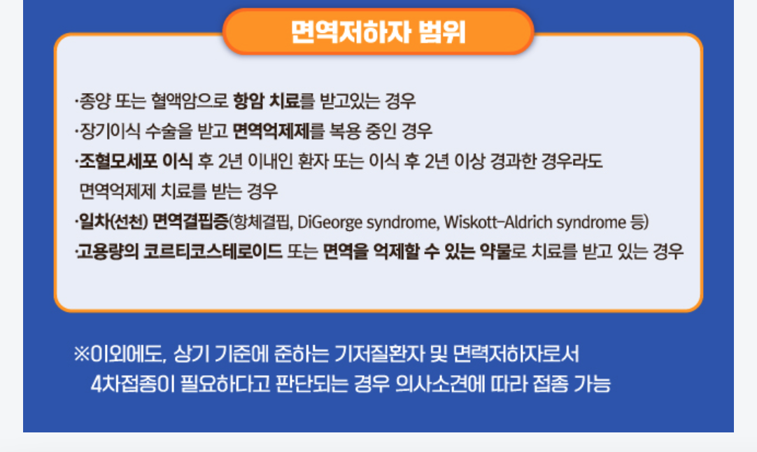 기저질환자 및 면역저하자 4차접종예약