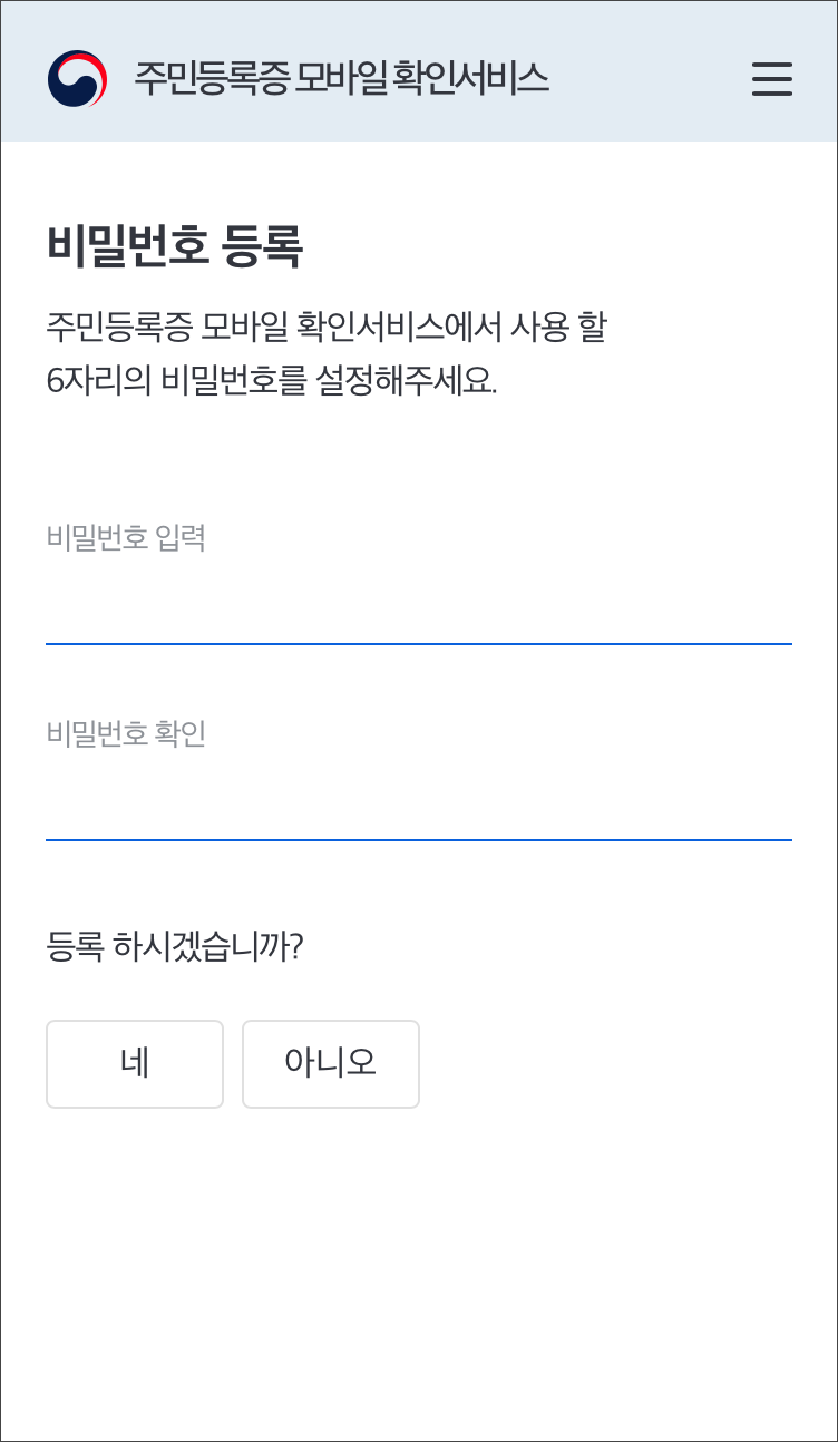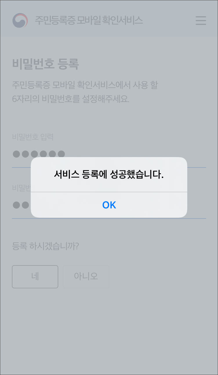주민등록증 모바일확인서비스를 이용할 때 사용할