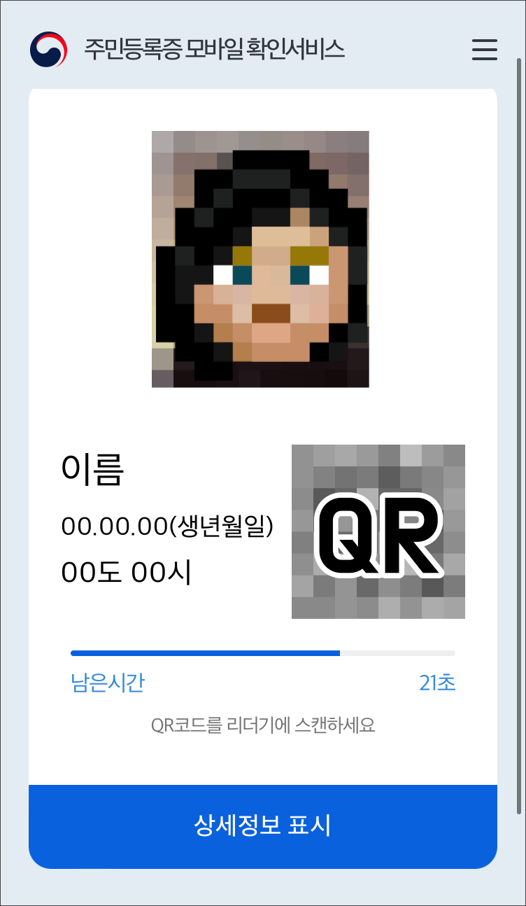 실물 주민등록증 없이 성명, 사진, 주민등록번호, 발행일, 주민등록기관 등 주민등록증에 기재된 정보와 그 진위 여부를 확인할 수 있는 서비스