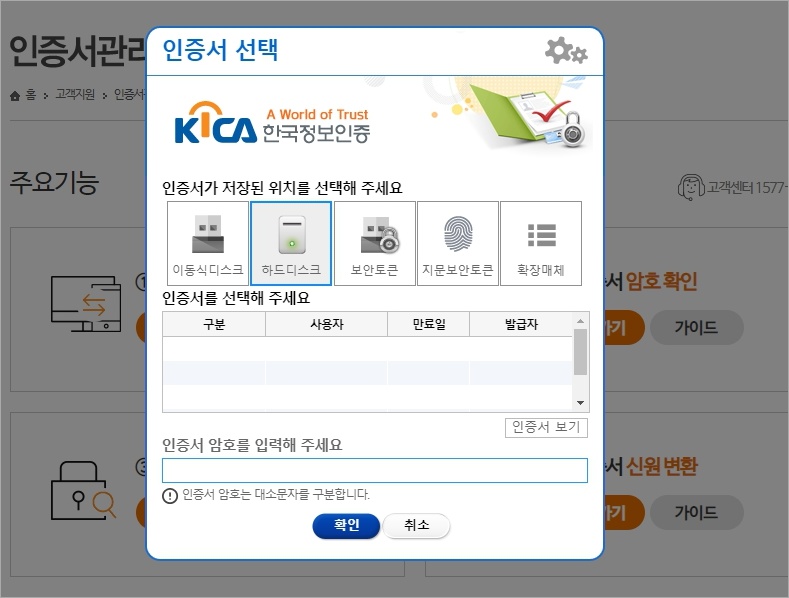 엥? 인증서 암호찾기하러 들어왔는데~ 인증서 암호를 입력하라니요... 라는 생각이 드실 텐데요. 저도 그랬습니다.