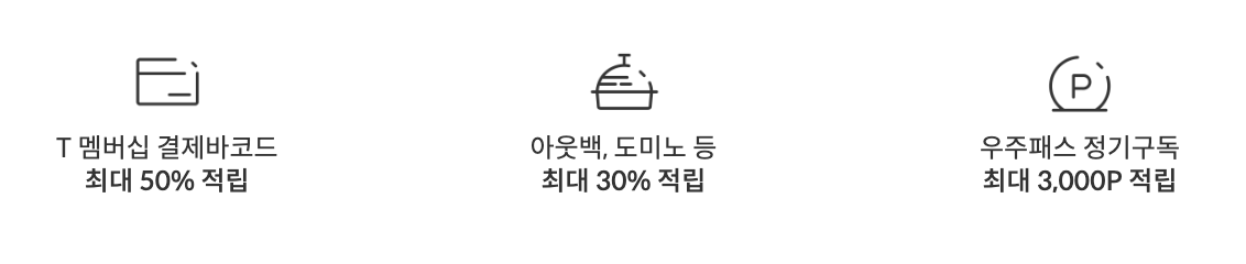 - T멤버십 라이프 신한카드가 T멤버십 결제바코드의 결제수단으로 등록된 경우에 한하여 헤택 제공됩니다.