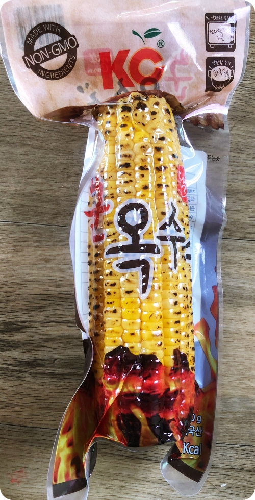 개봉 해 보니 토치로 그을린 듯한 군옥수수가 나는데요~