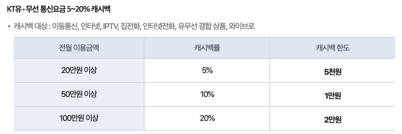 KT멤버십 캐시백 부분 알아볼까요?