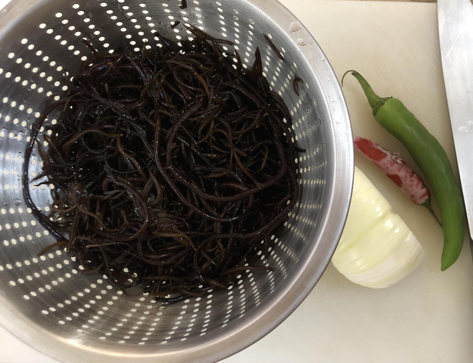 말린 톳을 물에 불리고 톳 무침을 해봤습니다.