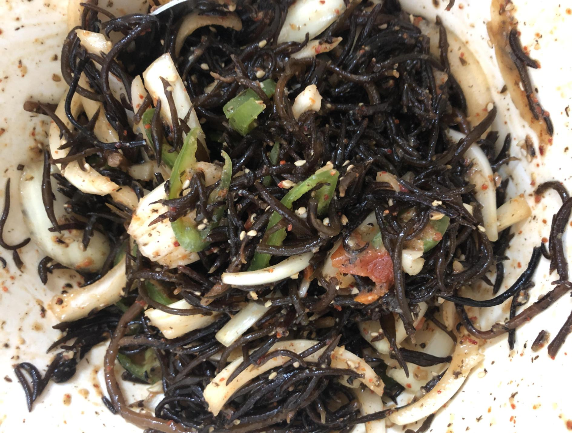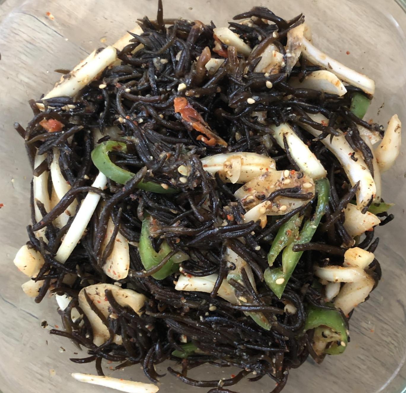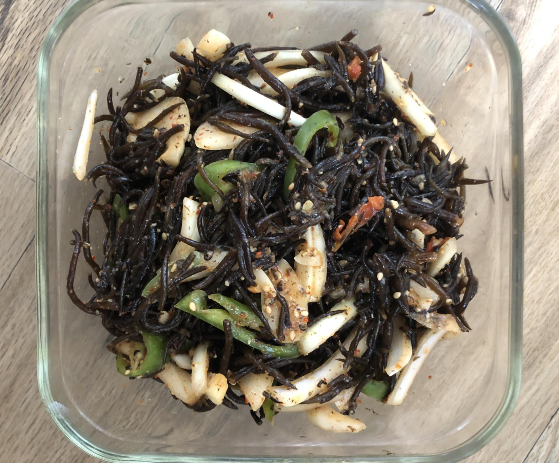 그리고 그릇에 담아 두었어요~ 양파가 좀 쎄서 아리긴 했지만, 톳무침은 제가 해도 먹을만 했어요~