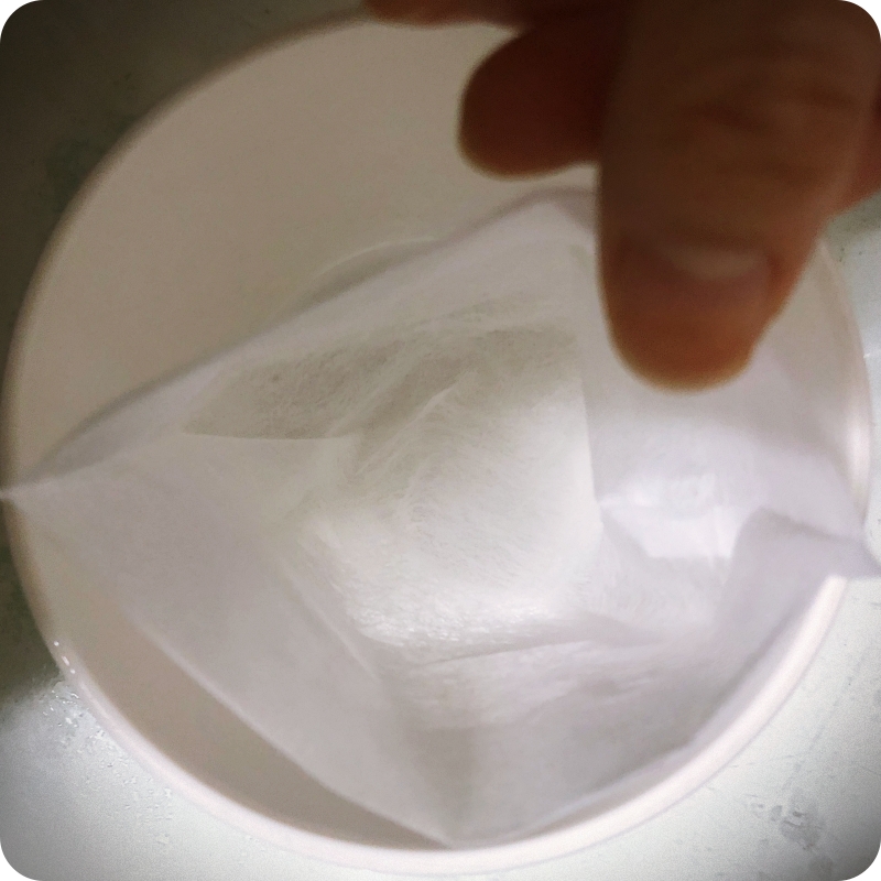 국물 끓일 때 쓰는 부직포 다시백으로 걸러주었습니다. 커피필터나 면포 등을 활용해도 괜찮습니다. 그도 없다면.. 키친타올을 활용해보세요~