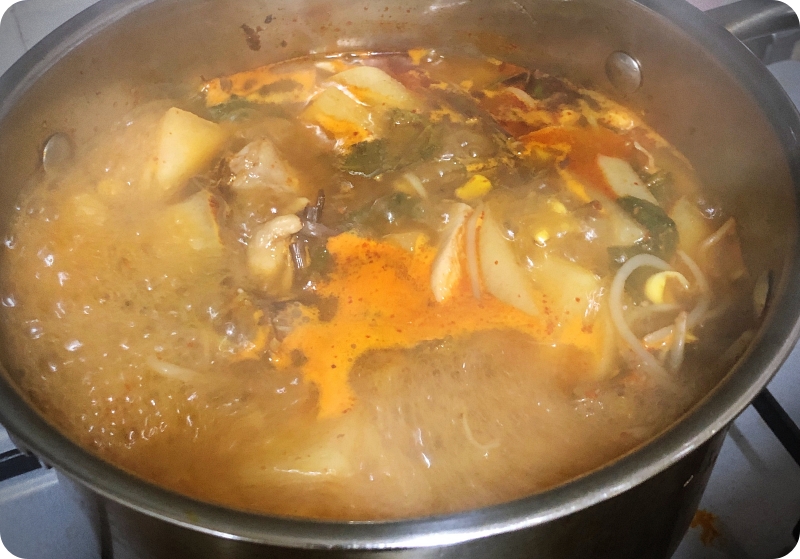 닭개장에 넣어 끓여봅니다. 요런 음식에는 고추기름이 빠지면 섭섭하더라구요~