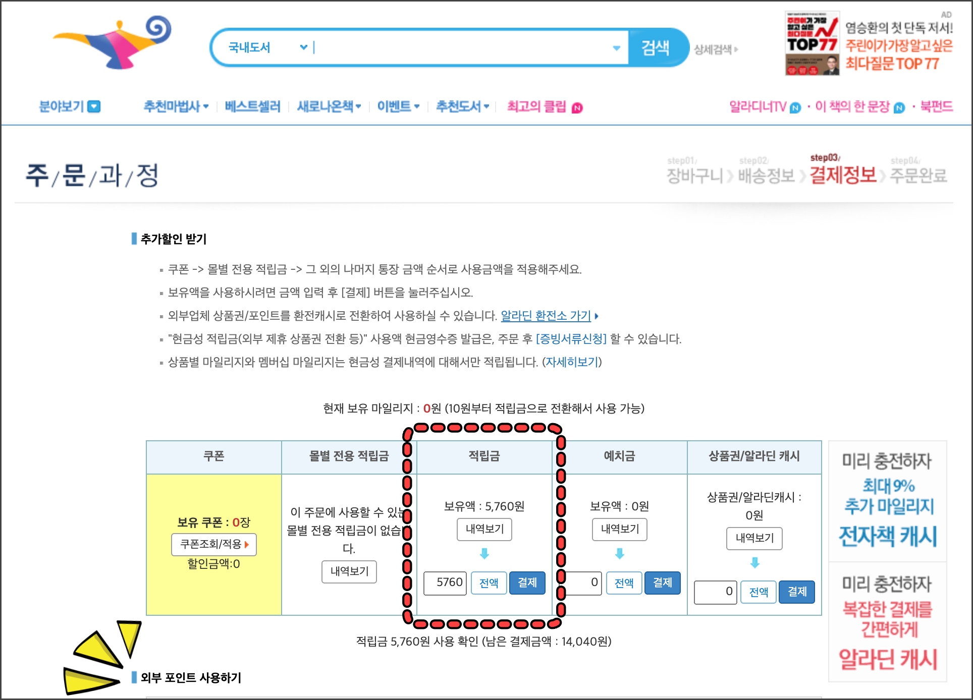 (저에게 적립금이 5,760원이 남아있어서 이거 소멸되기 전에 사용하려고 알라딘으로 책을 사고 있어요~ 중요한 건 그게 아니고 그 밑에.. )