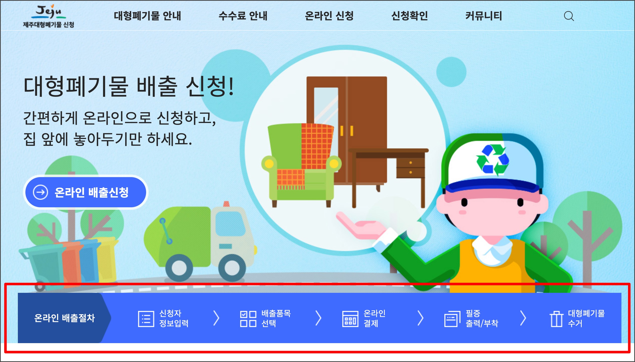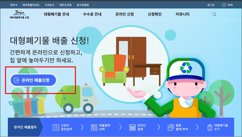 제가 살고 있는 제주는 대형폐기물관련 인터넷 페이지를 운영하고 있었습니다.