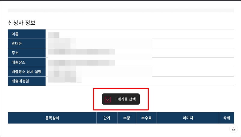 이름과 전화번호 주소 등. 폐기물 수거에 필요한 기본정보라고 보시면 됩니다.