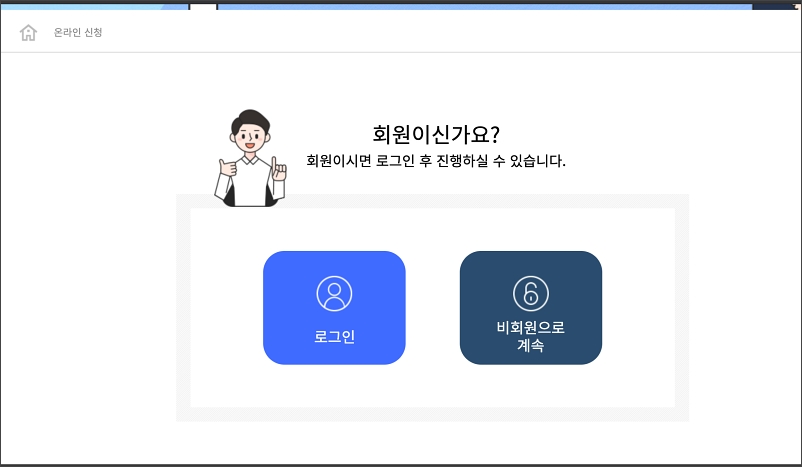 로그인 혹은 비회원으로도 진행할 수 있습니다. 저는 비회원으로 진행하겠습니다.