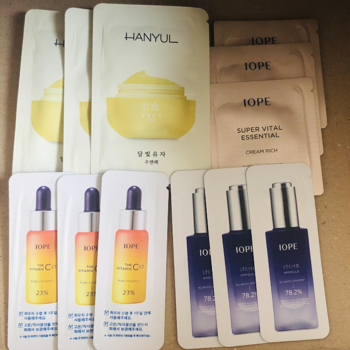 저는 그동안 써보고 싶던 아이오페 스템3 앰플 파우치 등을 넣어보았습니다.