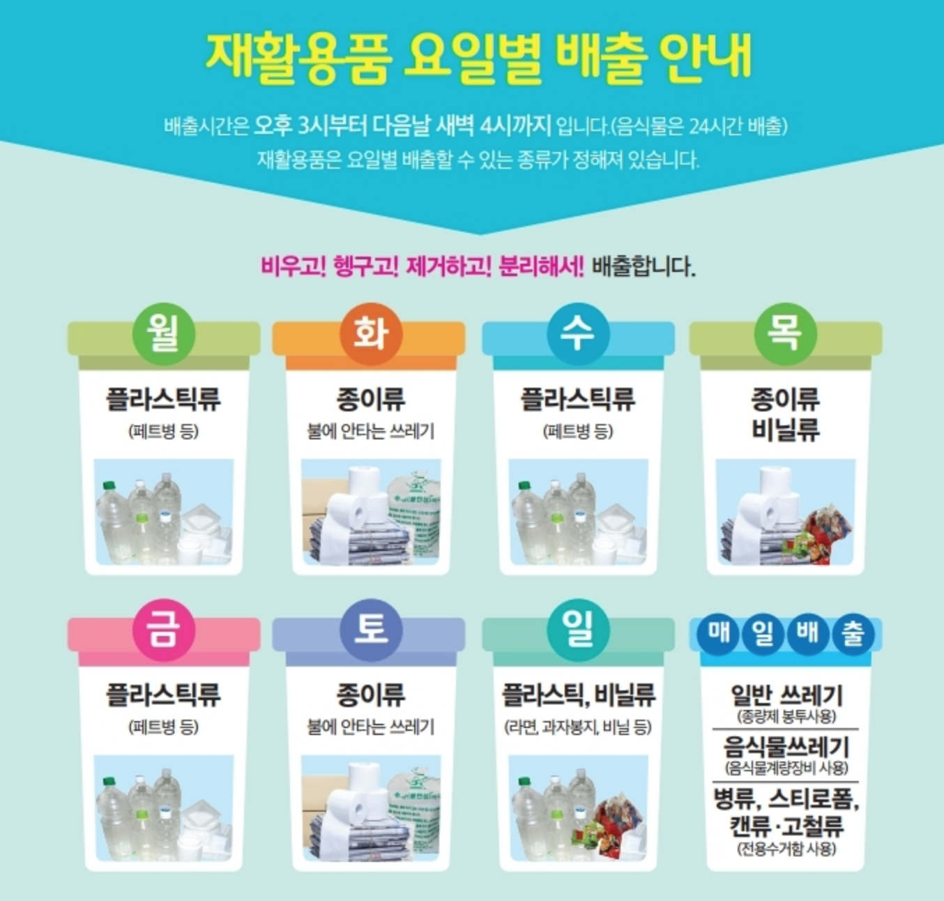 ✔️ 쓰레기 요일별 종류별 배출 지키기