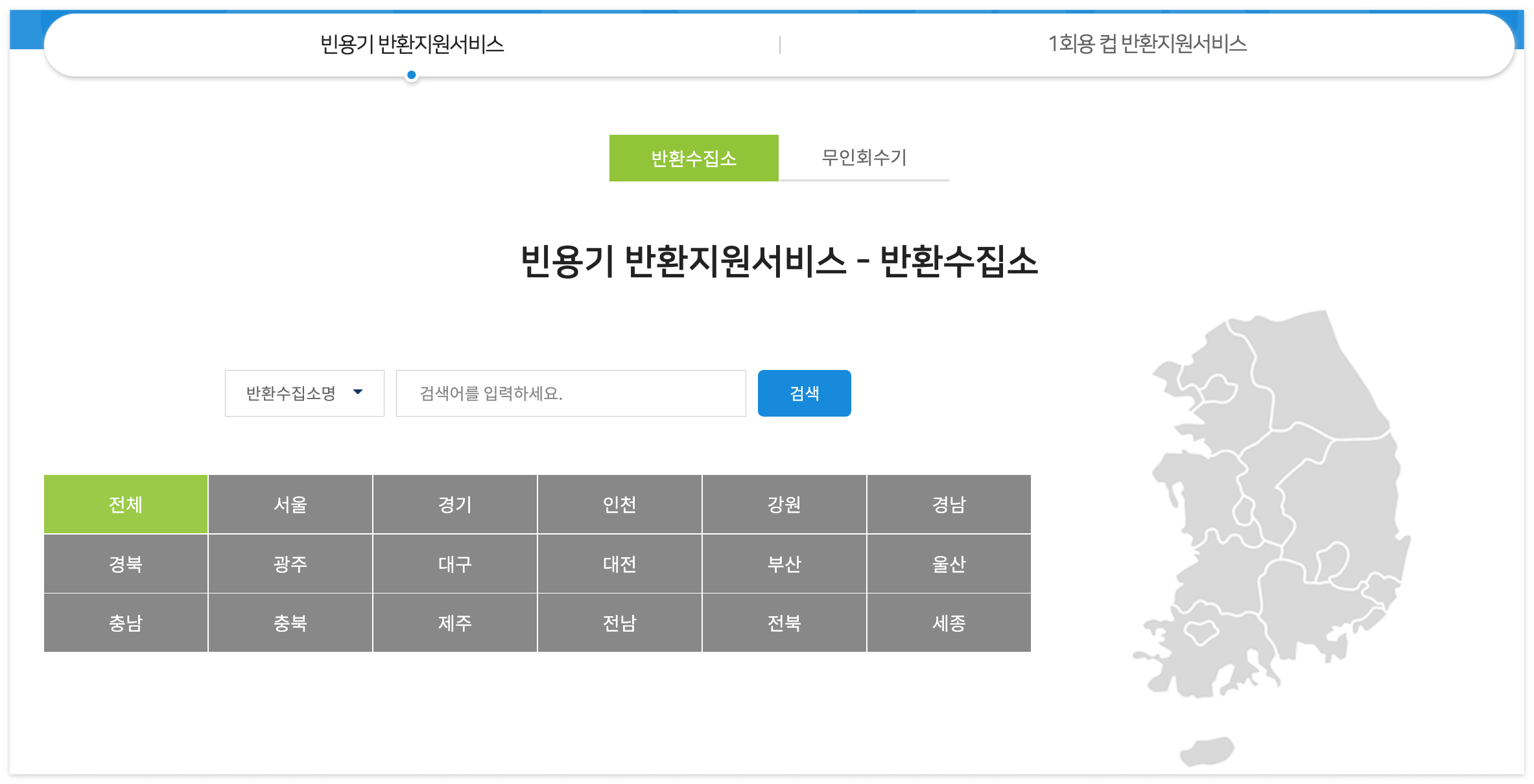 위치도 확인할 수 있으니 사시는 지역의 반환수집소나 무인회수기 위치를 알고싶으신 분은 위 링크로 들어가셔서 확인해보세요~