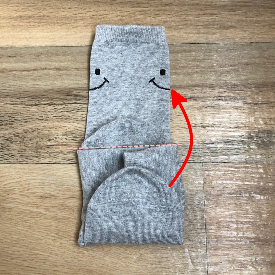 가로로 놓여진 아래 양말 발끝 부분을 가운데 방향으로 접어줍니다.