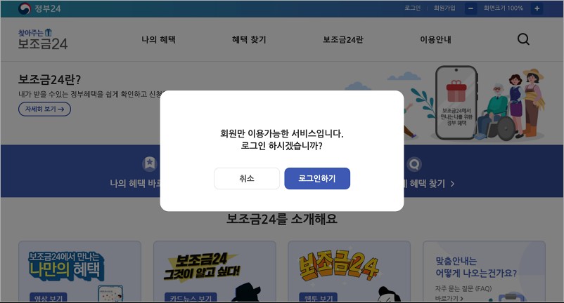 보조금 24 이용 방법