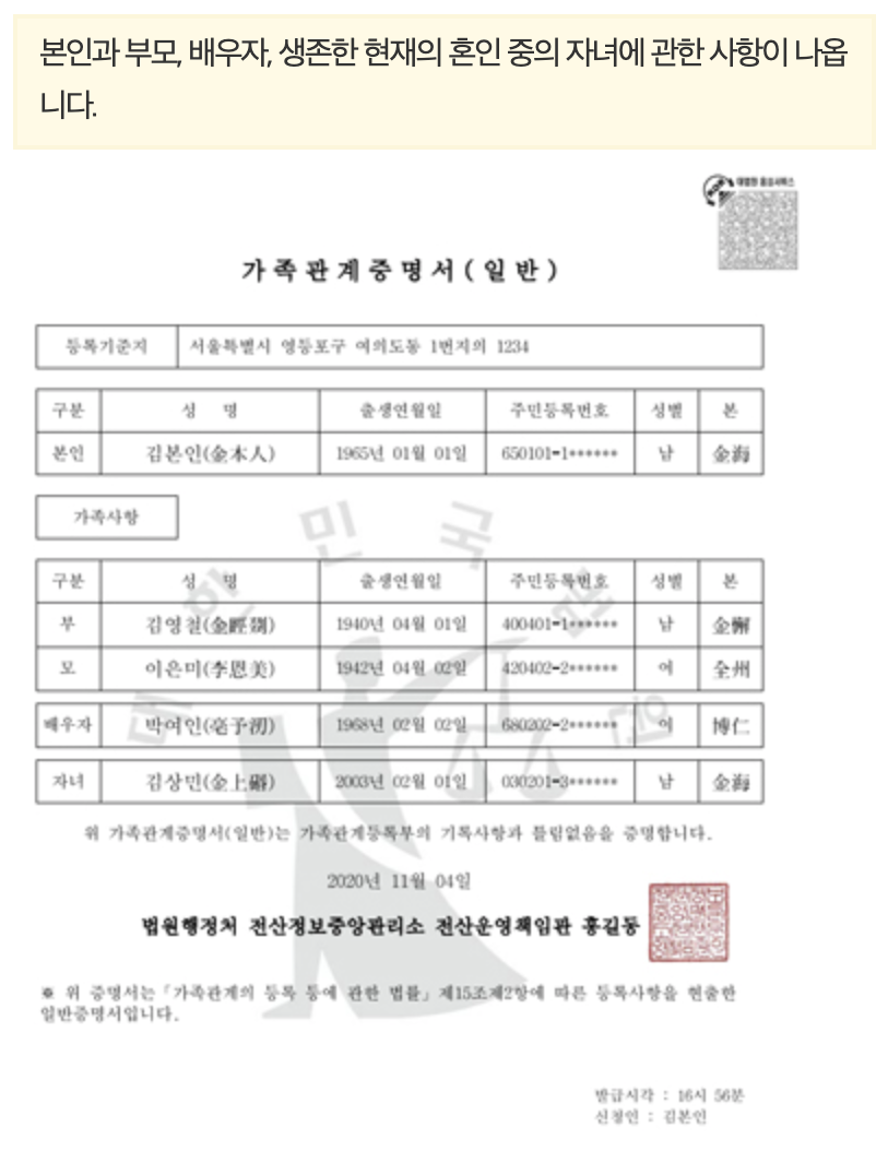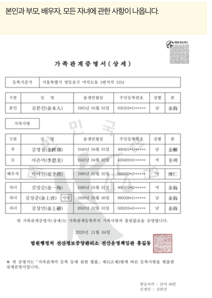 ✔️ 가족관계증명서 - 일반, 상세, 특정 증명서 예시