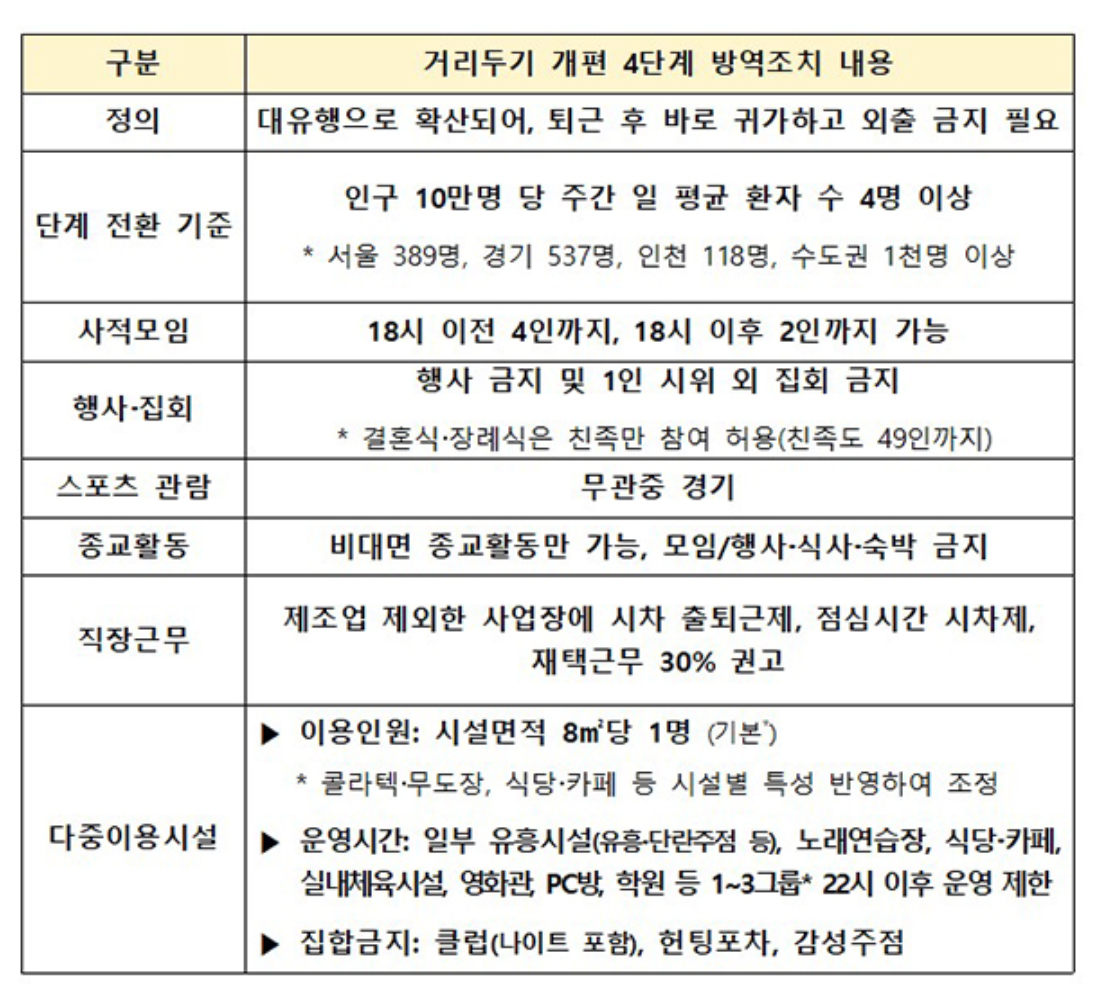 수도권 4단계 방역 수칙