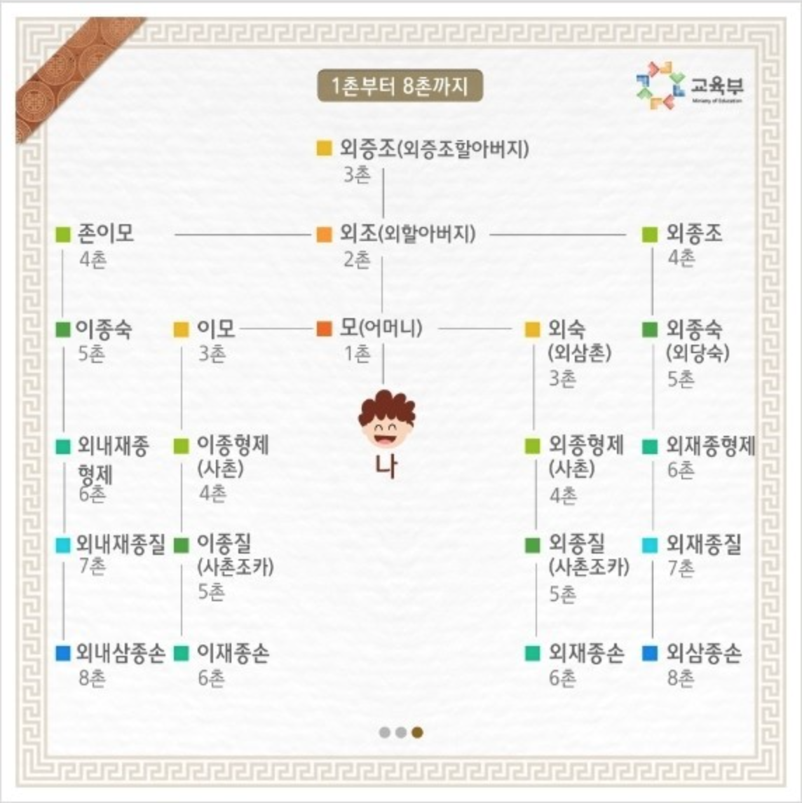아버지의 형제 -> 아버지의(+1 ) 형제(+ 2) = 3촌