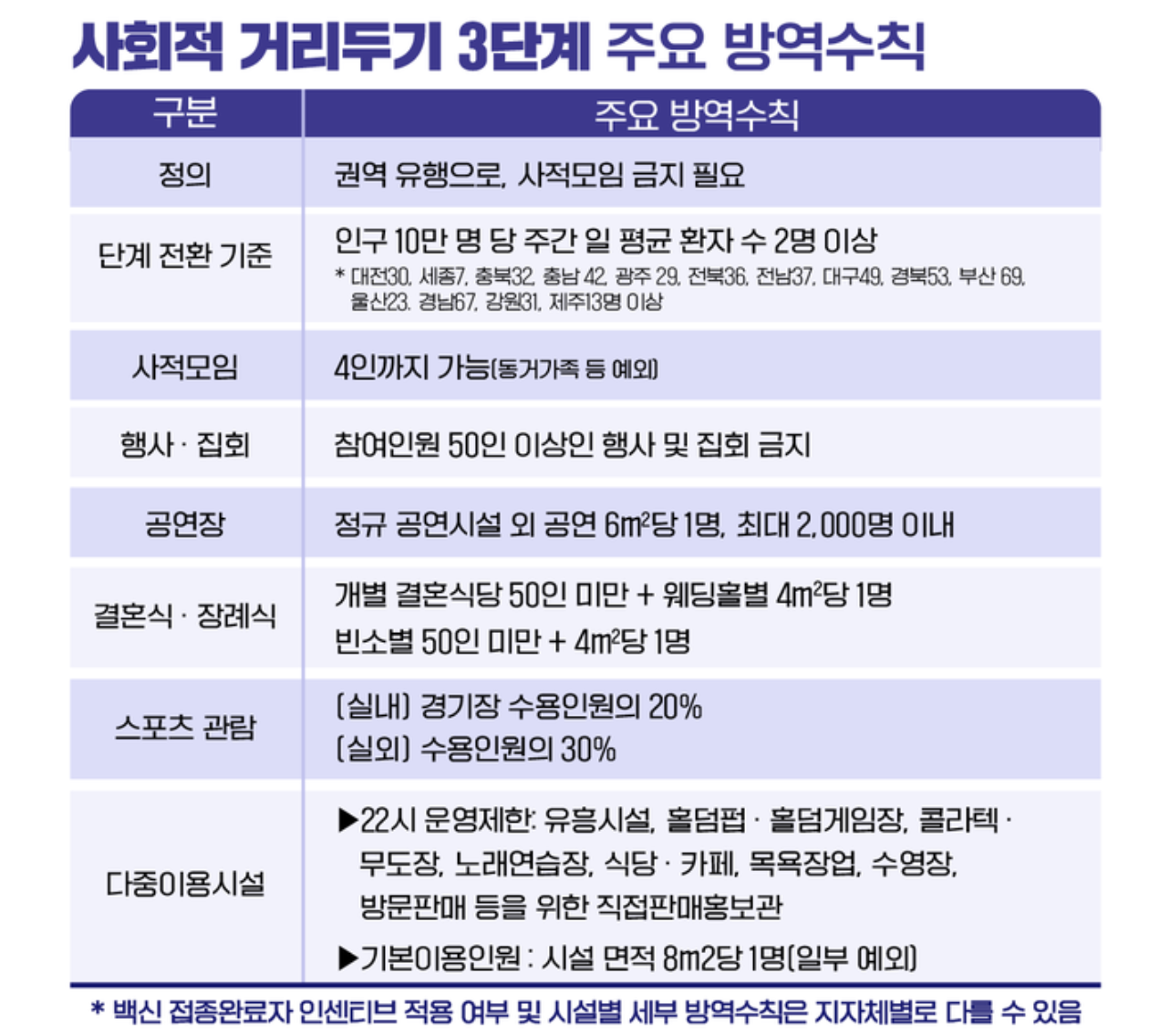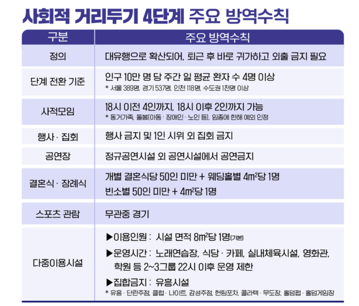 사회적 거리두기 3단계, 4단계 주요 방역수칙