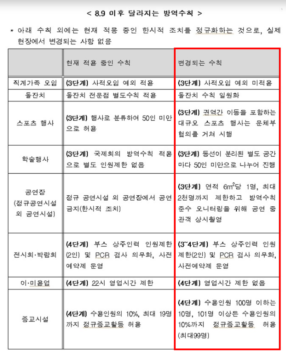 거리두기 3단계 사적모임 예외, 방역수칙 조정 8월 9일 ~ 22일