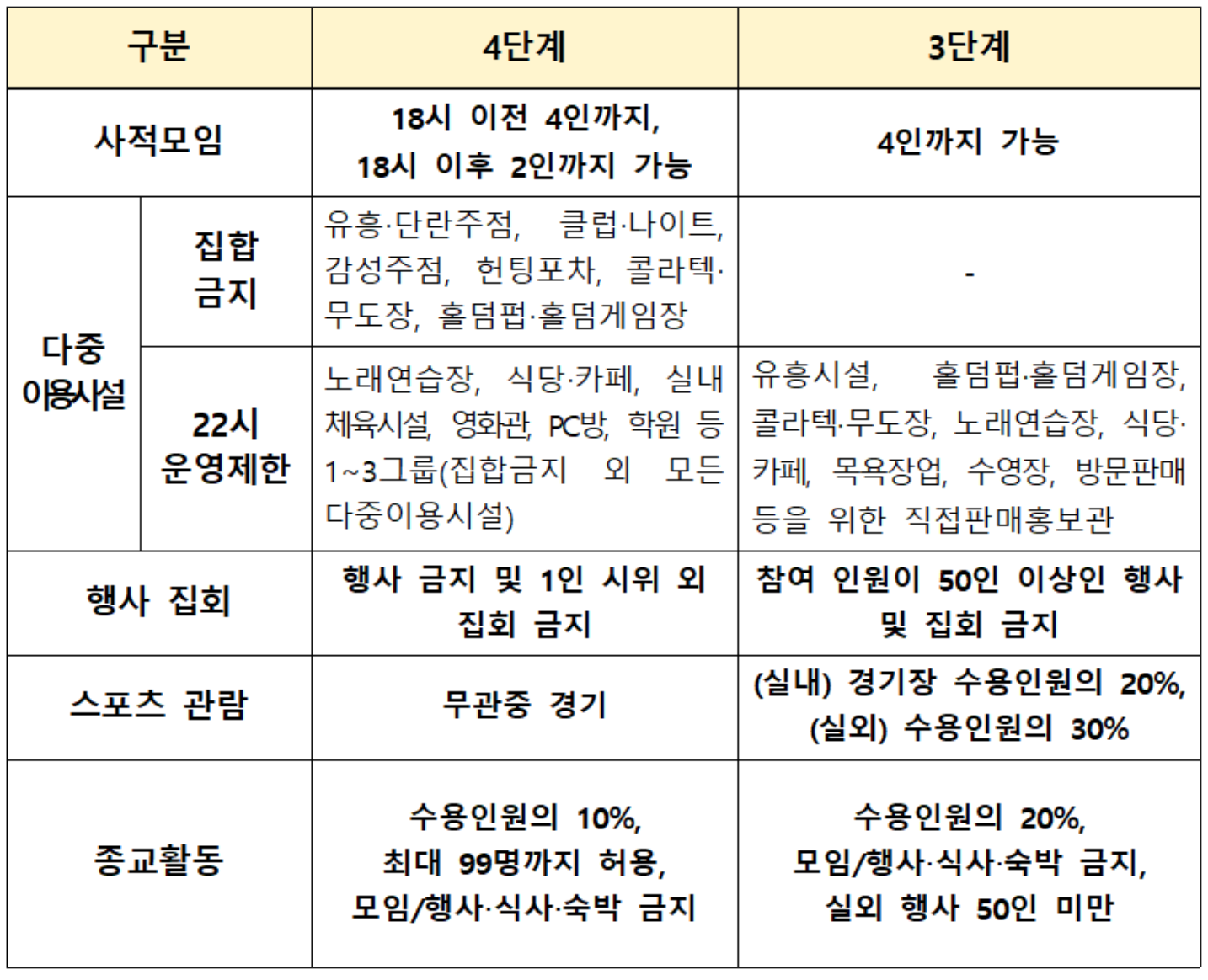 - 3단계에서는 직계가족도 예외가 인정이 되지 않아 4인까지만 모일 수 있는데요~