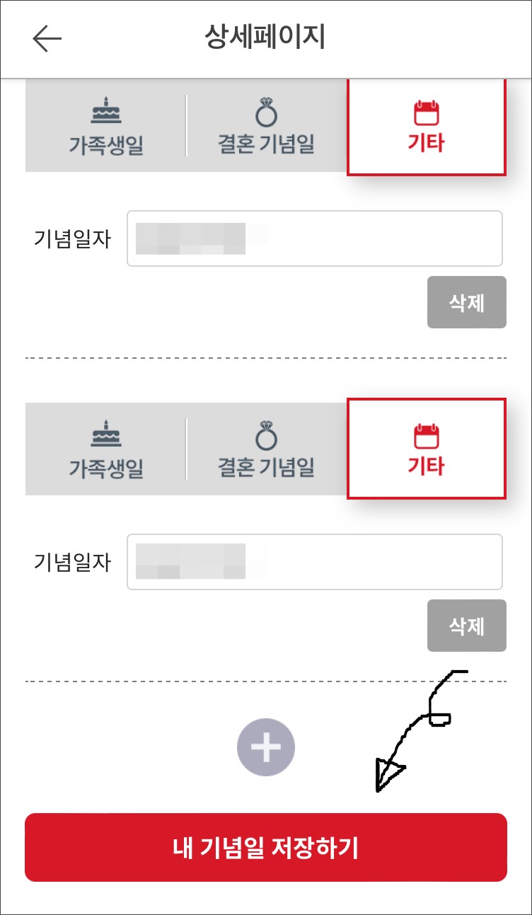 이번엔, 기념일 저장 페이지로 들어가봅니다.