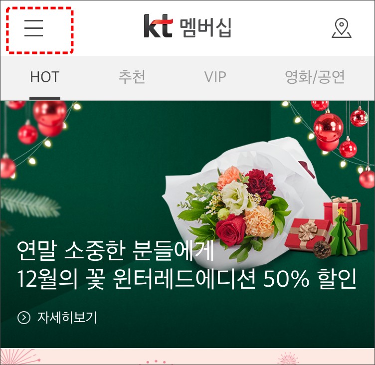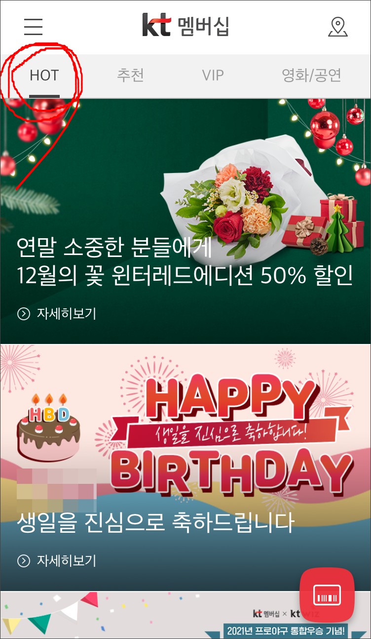 케이티멤버십 앱 HOT메뉴에서 그때 그때 맞춤 혜택을 제공한다고합니다.